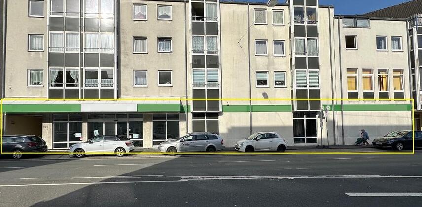 Die Mietfläche befindet sich im Erdgeschoss eines Wohn- und Geschäftshauses.