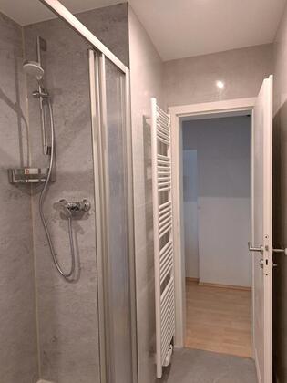 Das kleine neusanierte Tageslichtbad hat eine Dusche.
